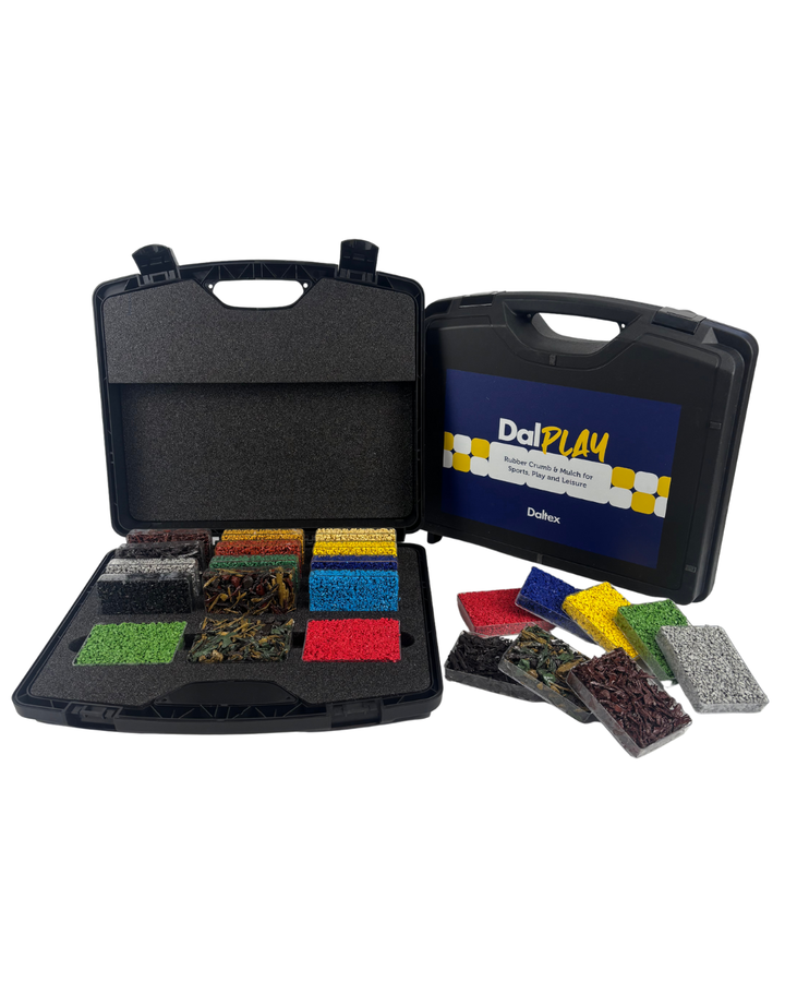 Our new high quality DalPlay Sample Case adds professionalism to every presentation and makes it easy for clients to see and compare rubber crumb and mulch colours from the DalPlay range