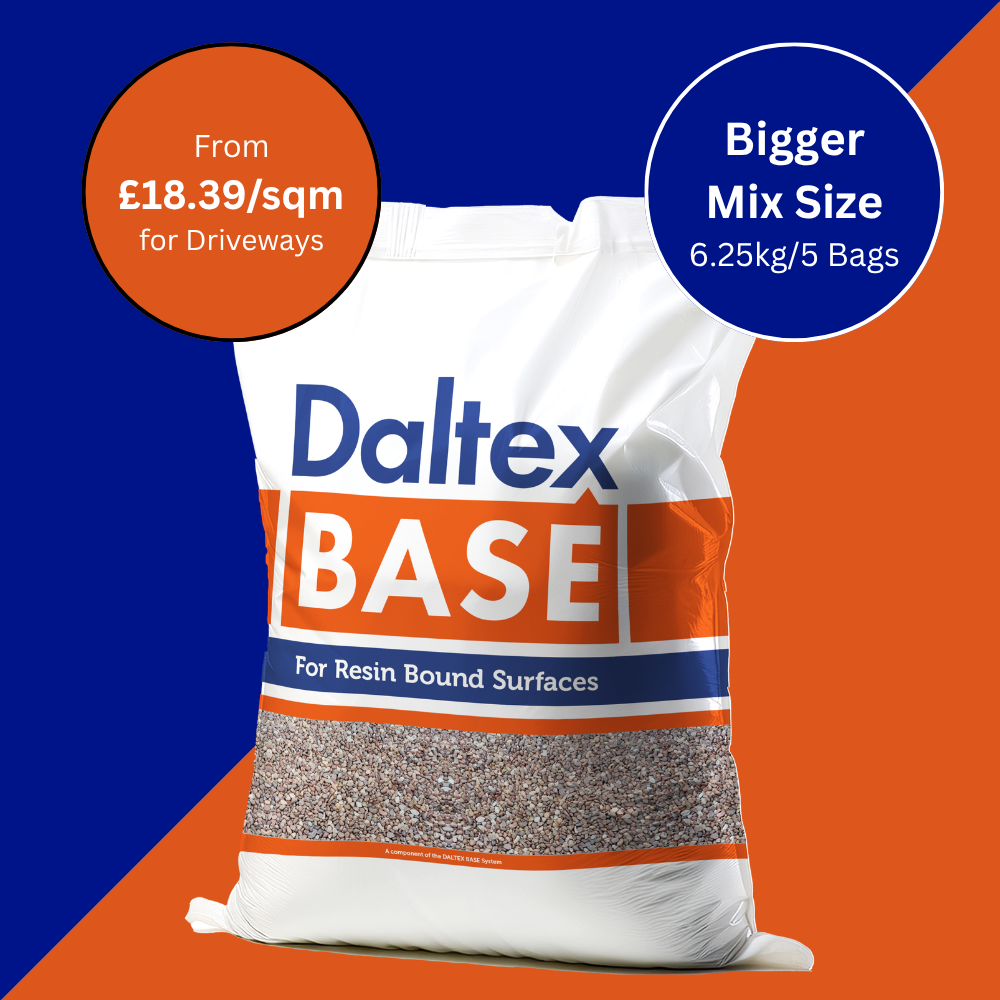 The NEW DALTEX BASE System features a BIGGER MIX SIZE - combining 6.25kg of resin with 5 bags of stone - delivering a superior 5% resin-to-stone ratio and greater coverage per mix.