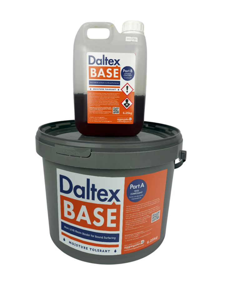 NEW DALTEX BASE RESIN is specially formulated for resin bound bases. This non-UV stable resin is a two part polyurethane resin designed for use as part of the NEW DALTEX Base System. This resin is available in a 6.25kg kit, which is part of a BIGGER MIX SIZE of 5 bags of stone.